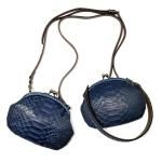 ボディーバック ワンショルダーバッグ 牛革 ワニ革 クロコダイルレザー 吟擦り ヌバック ブルー 2