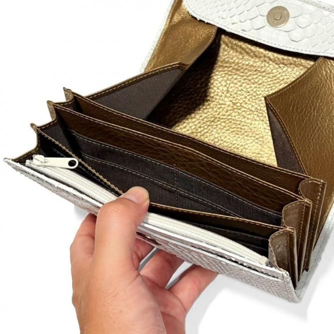 パイソン ヘビ革 本革 財布 札入れ 封筒型 ボックス小銭入れ付 ブロンズ ベージュ 2