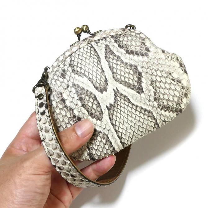 パイソン モラレス マット 本革 がま口 バッグ ミニ 3WAY ベルト2タイプ付属 / 手提げベルト ショルダーベルト(色選択)
