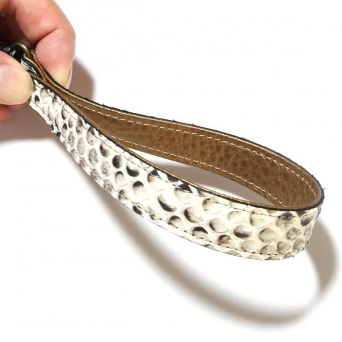 ”手提げベルト” は、表面にはパイソン革、裏面は程よい柔らかさのある牛革。