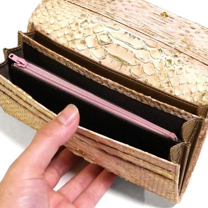 ・天然パイソン革は、爬虫類特有のウロコが存在しています。同シリーズのパイソン製品であっても革の表情が一つ一つ異なり 世界でひとつだけのオリジナルアイテムを楽しめることが大きな魅力です。