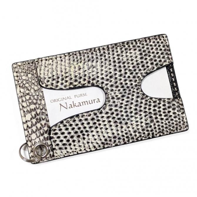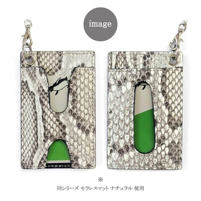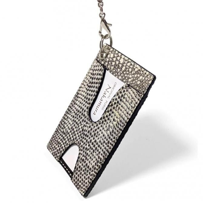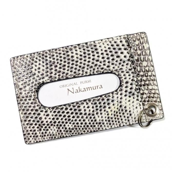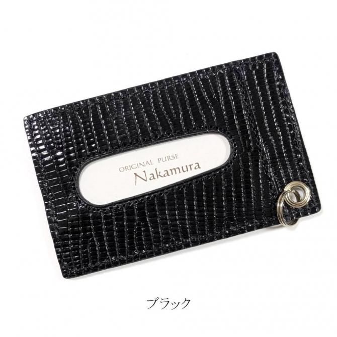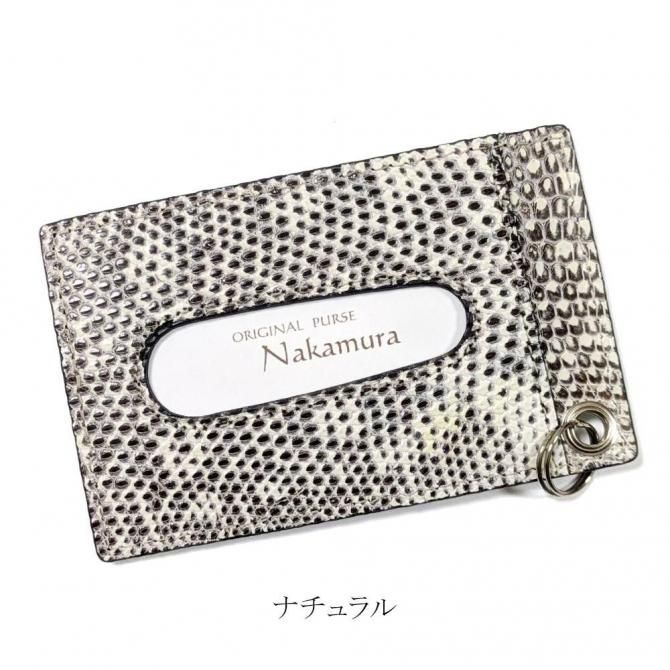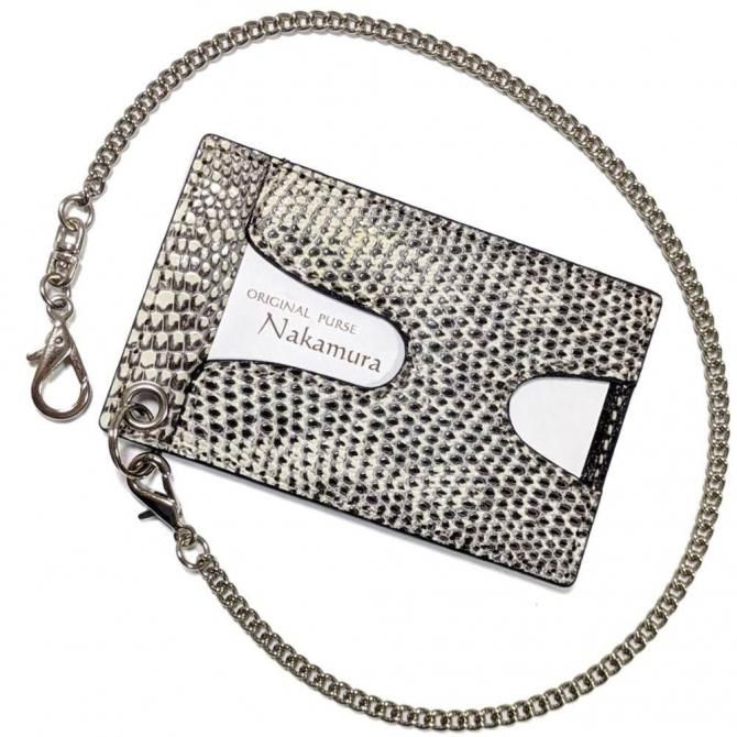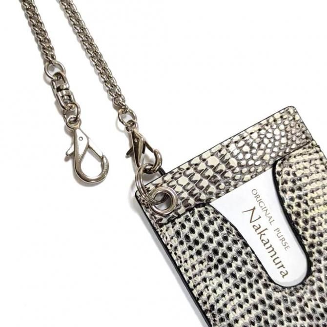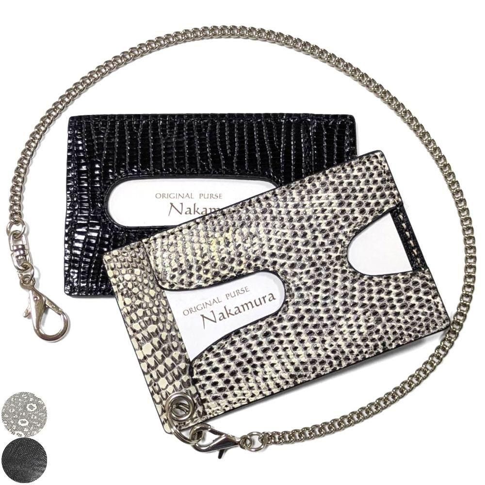 両面パスケース チェーン付き 薄型 定期入れ パス入れ 本革 トカゲ革 リザード