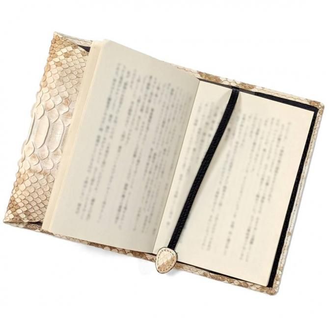 天然パイソン革を使用した、高級感あふれる文庫本サイズのブックカバー。
