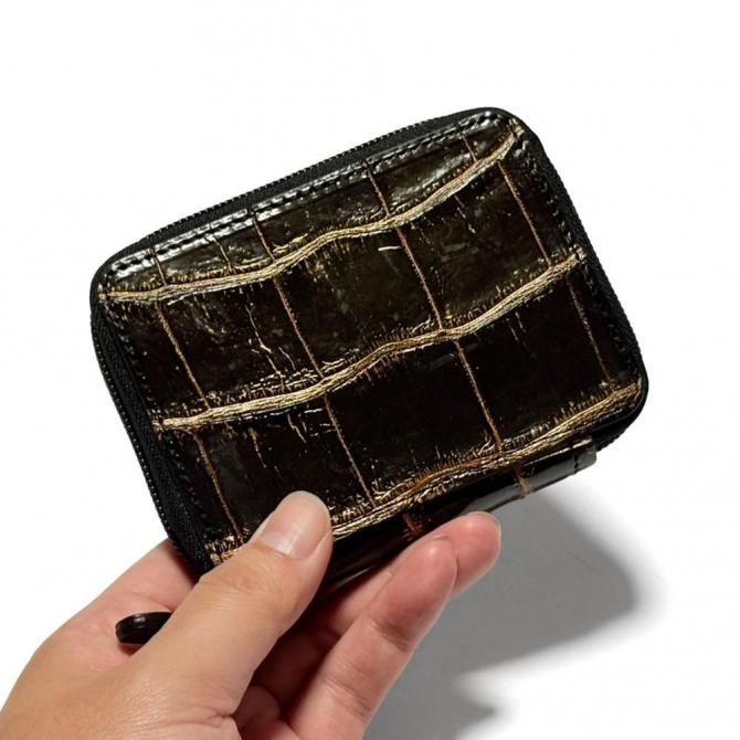 ・クロコダイル(ワニ革)は「竹腑」と呼ばれる四角模様や「丸腑」と呼ばれる丸模様の凹凸のある独特なウロコ模様の美しさが特徴です。 型押し品ではなく天然素材の為、自然な小傷等、シワ等がある場合もございます。 個体・部位によって違いが有り 写真とは柄の大小・形状は多少異なります事は天然の特徴、革の特性である事をご理解の上ご検討下さい。