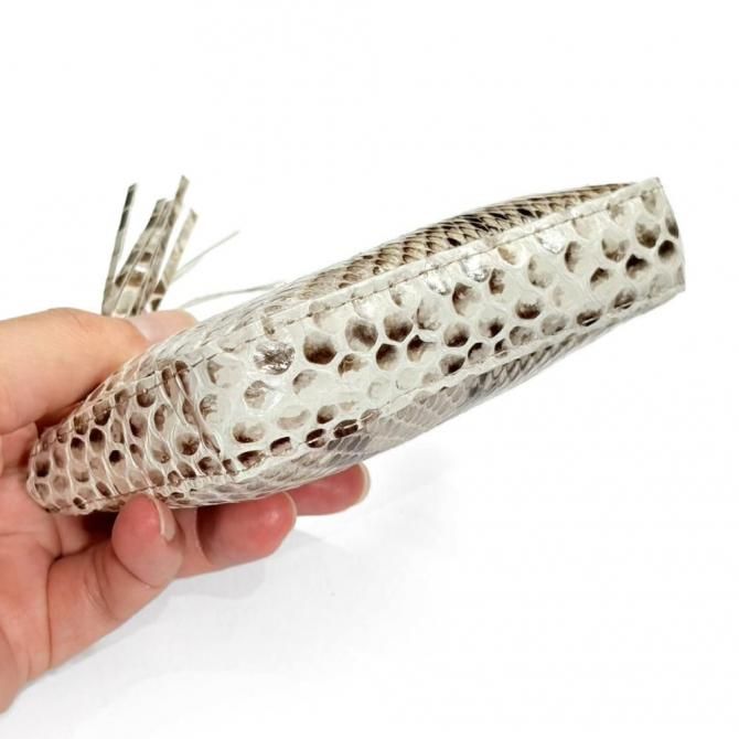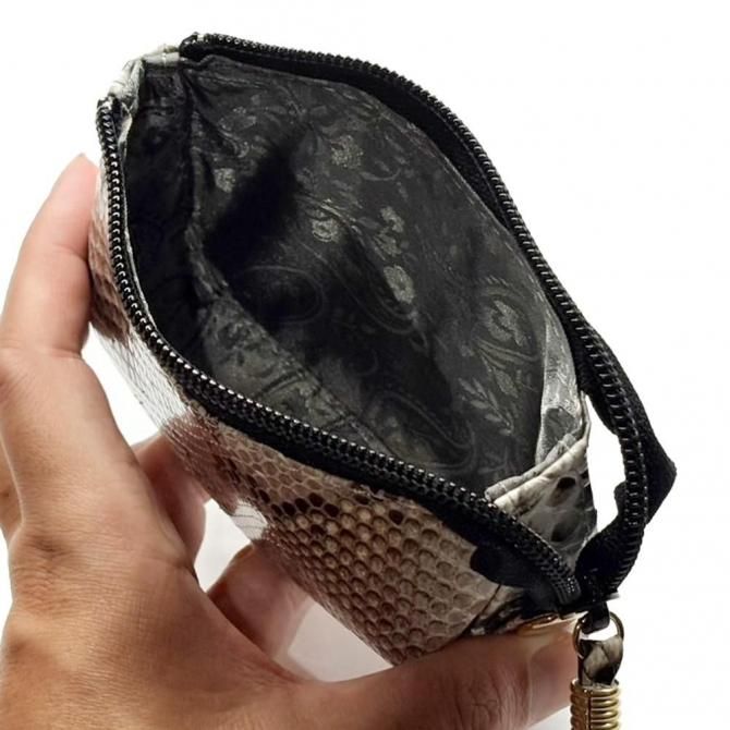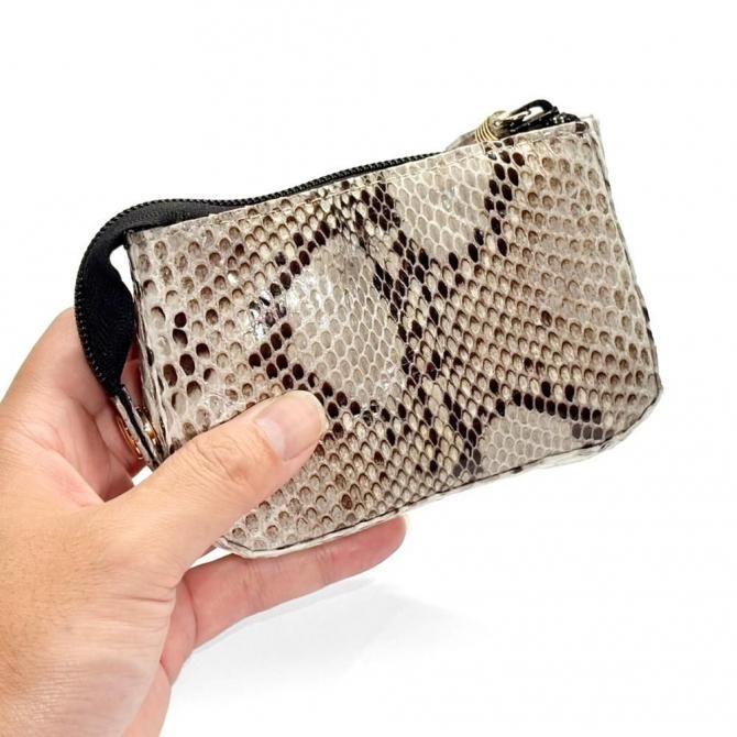 シンプルな シングルファスナー本革パイソンポーチ は、毎日の収納をスマートにサポートします。