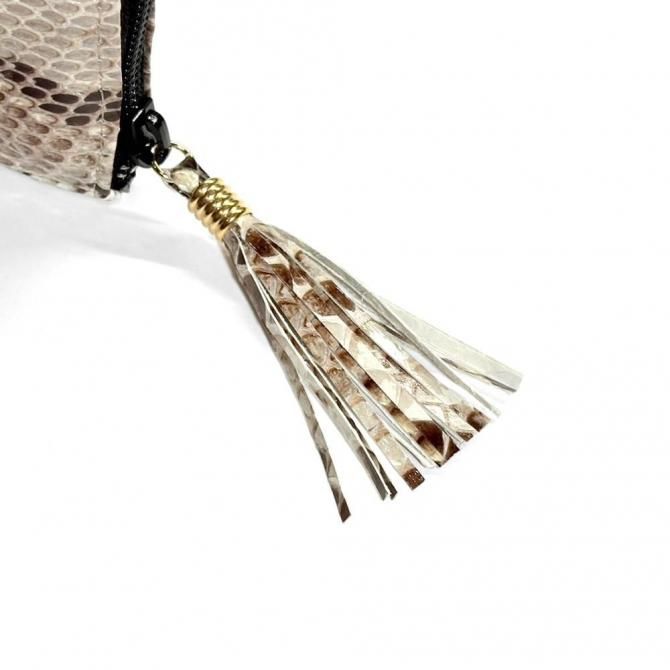 外装全面とタッセルは同革仕様、タッセルも職人の手仕事による仕上げ。上質なパイソン革の艶と質感を余すことなく楽しめます。