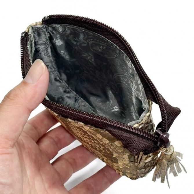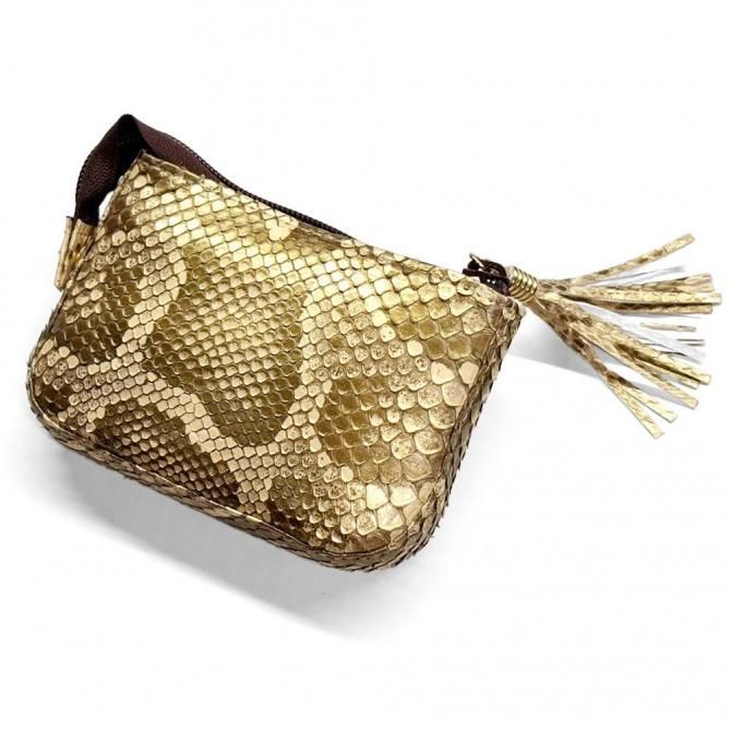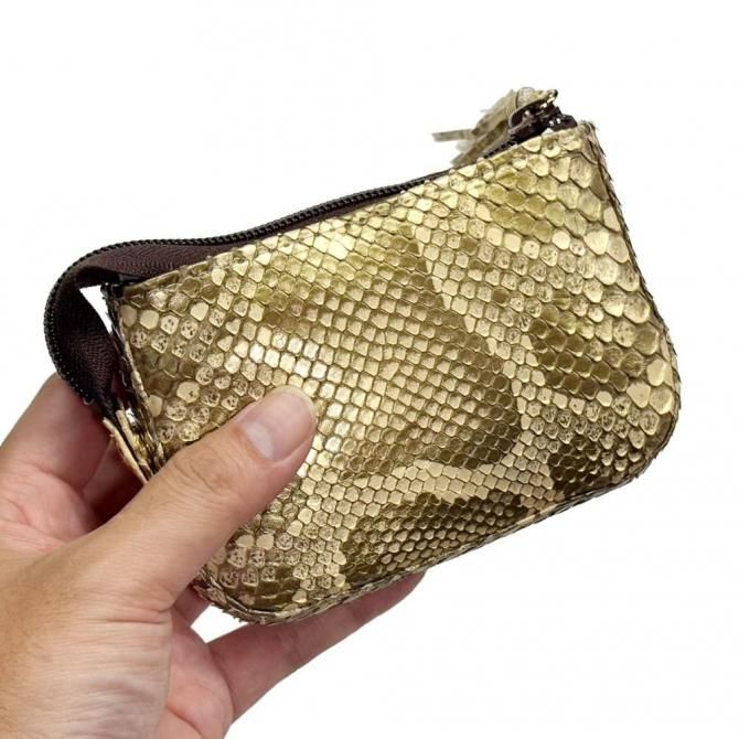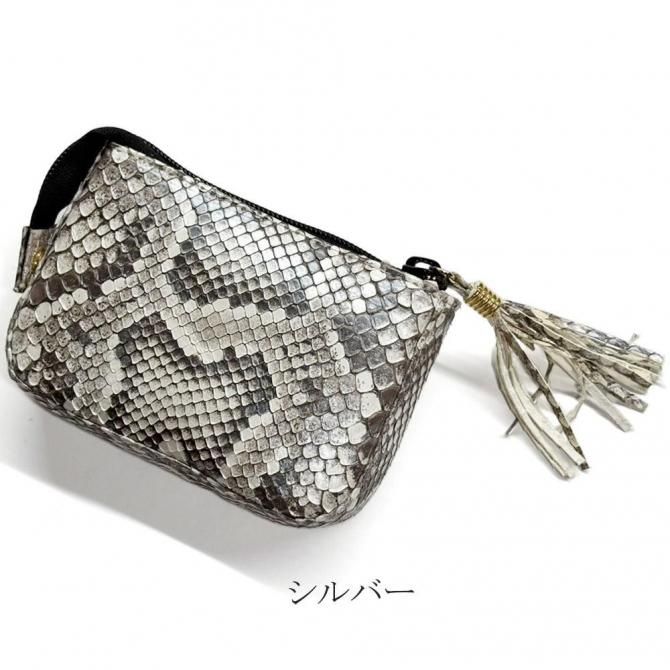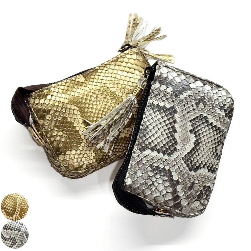 シンプルな シングルファスナー本革パイソンポーチ は、毎日の収納をスマートにサポートします。