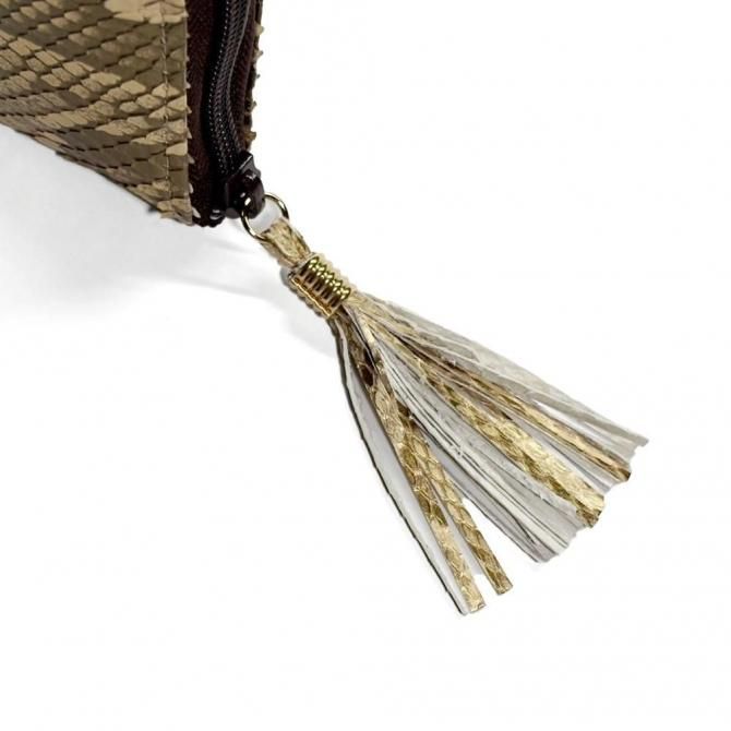 外装全面とタッセルは同革仕様、タッセルも職人の手仕事による仕上げ。上質なパイソン革の艶と質感を余すことなく楽しめます。
