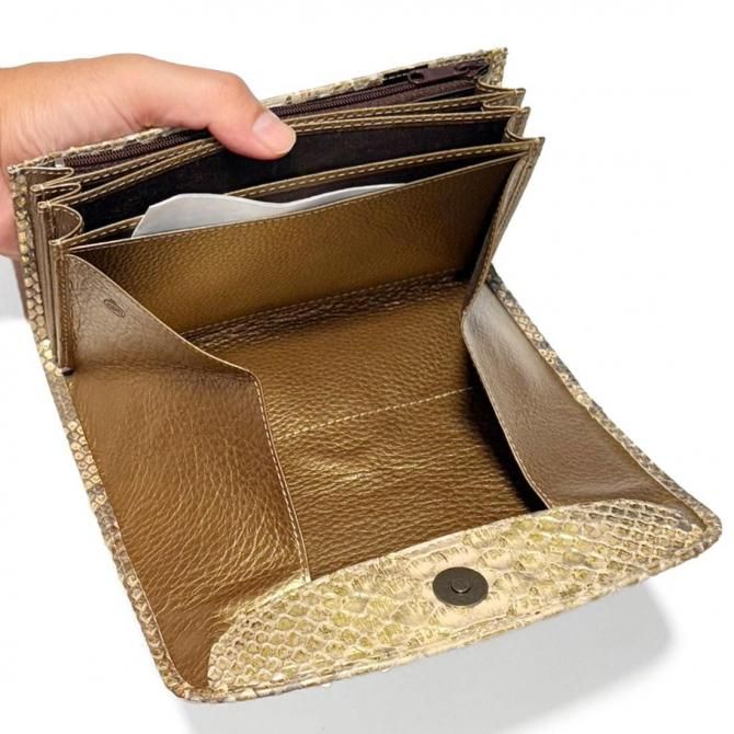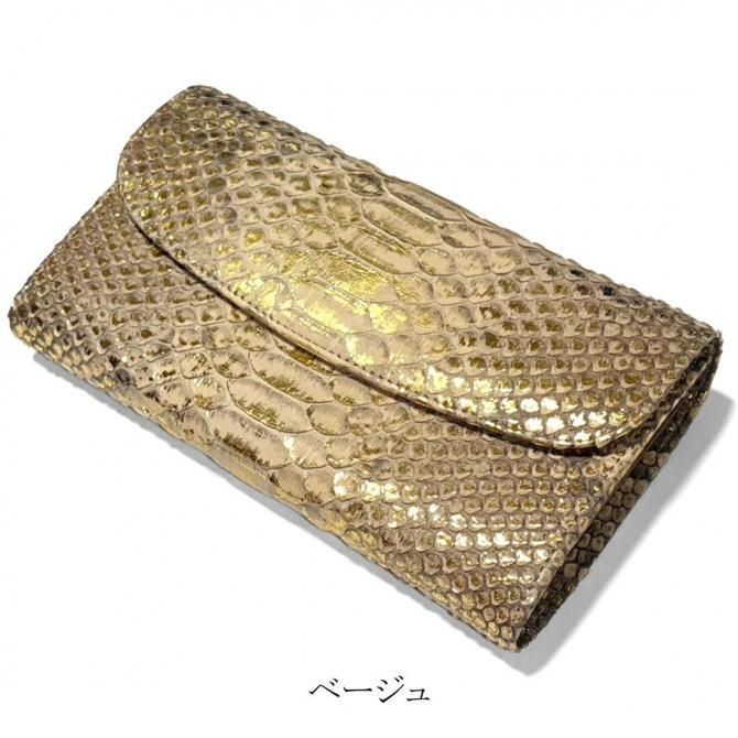 >・札入れスペース×3・・・紙幣を種類ごとに分けて整理しやすく、出し入れもスムーズ ・カード入れ×12・・・よく使うカードをひと目で確認できる実用的なレイアウト ・ギャルソンポケット×1 ・・・大きく開いて中身がひと目で確認できる小銭入れ ・ファスナーポケット×1・・・貴重品を安心してしまえるファスナー付き ・ポケット×3・・・カードやチケットなどを分類して整理できる多目的ポケット >外装 パイソン(ヘビ革)・ 内装 パイソン(ヘビ革) + 牛革 + シャンタン織物