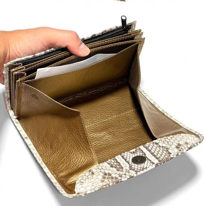 ・天然パイソン革は、爬虫類特有のウロコが存在しています。同シリーズのパイソン製品であっても革の表情が一つ一つ異なり 世界でひとつだけのオリジナルアイテムを楽しめることが大きな魅力です。