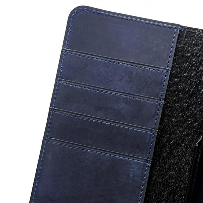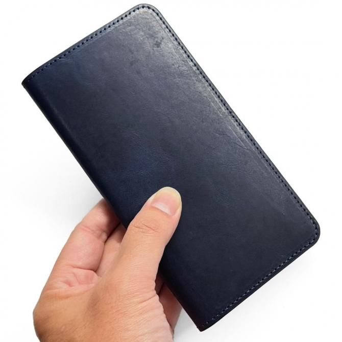 ※本製品の本体表の革は”継ぎ接ぎなし一枚仕上げ”の為、折り目にスジや切れ目などの加工はしていません。その為、使い始めは革の張りが強い状態となり自然とケースが開いてしまうことがありますが、使うたびに革が馴染みスマートフォンの厚みに合わせて閉じやすくなります。