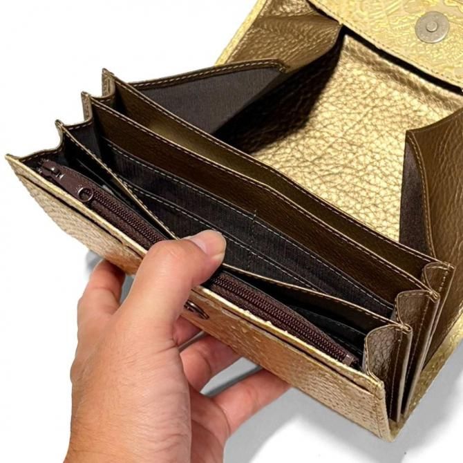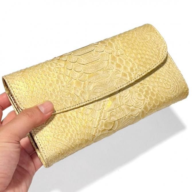 >・札入れスペース×3・・・紙幣を種類ごとに分けて整理しやすく、出し入れもスムーズ ・カード入れ×12・・・よく使うカードをひと目で確認できる実用的なレイアウト ・ギャルソンポケット×1 ・・・大きく開いて中身がひと目で確認できる小銭入れ ・ファスナーポケット×1・・・貴重品を安心してしまえるファスナー付き ・ポケット×3・・・カードやチケットなどを分類して整理できる多目的ポケット >外装 パイソン(ヘビ革)・ 内装 パイソン(ヘビ革) + 牛革 + シャンタン織物